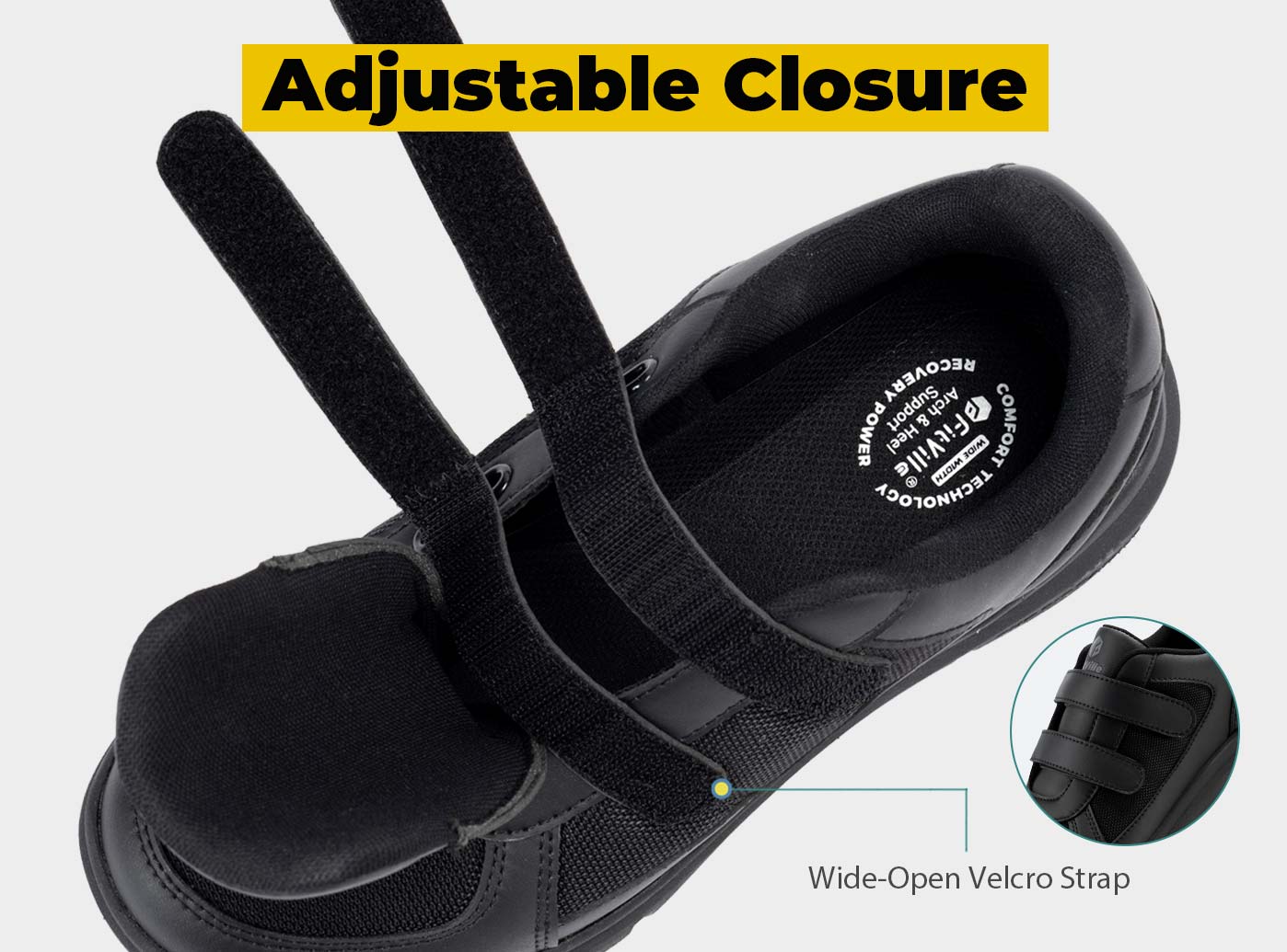 Double strap closure offer two points of adjustability for a more personalized fit
